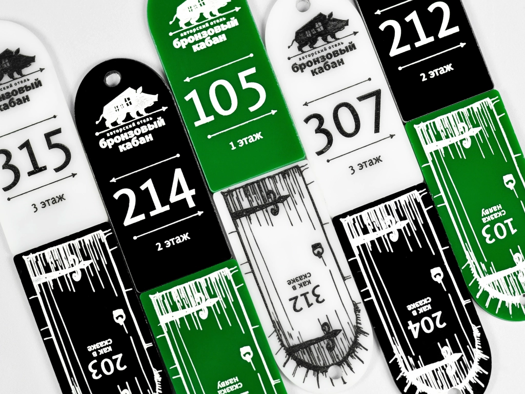 Акриловые номерки фигурной формы для отеля "Бронзовый Кабан"