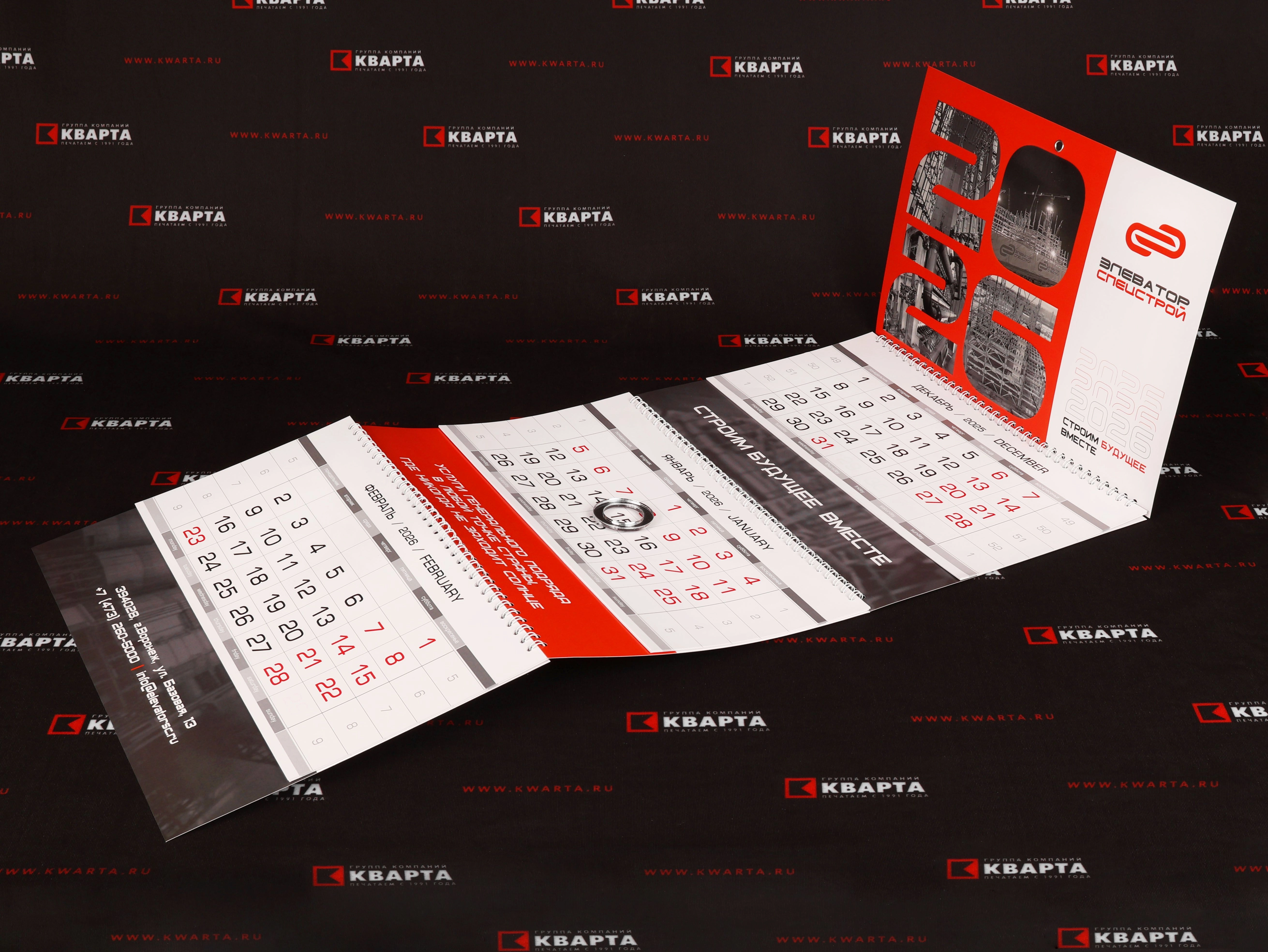 Брендированные квартальные настенные календари для "ЭЛЕВАТОР СПЕЦСТРОЙ"