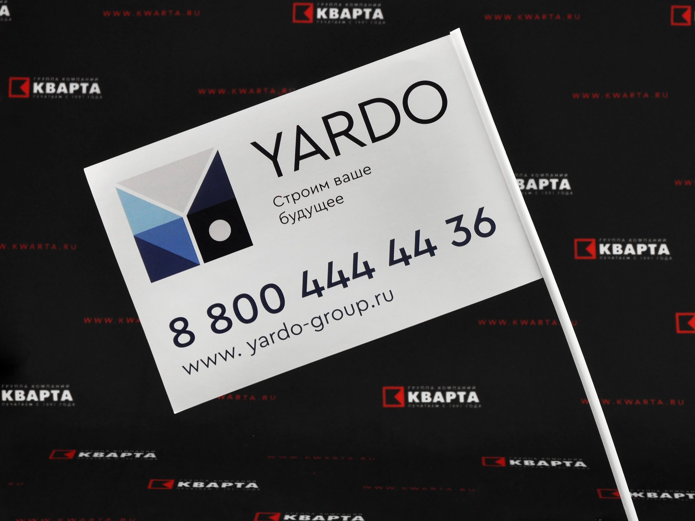 Флажки на палочке 22×15 см с двухсторонней полноцветной печатью. Это эффективный инструмент для оформления рекламных мероприятий, промоакций, презентаций, уличных акций и спортивных событий.Преимущества продукции: