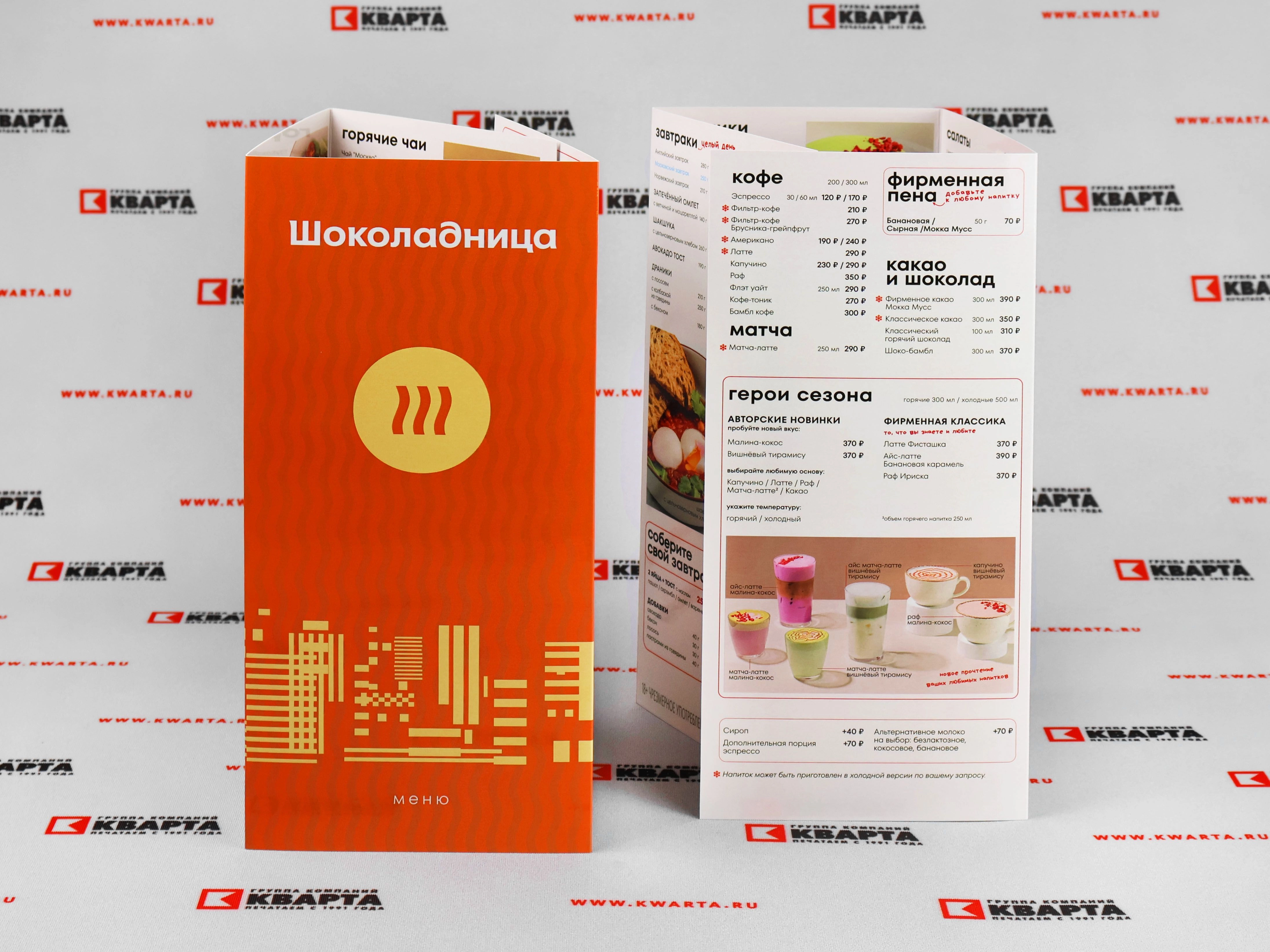 Меню в формате евробуклета с глянцевой ламинацией — практичное и визуально привлекательное решение для кафе, ресторанов и баров. Такой формат удобен для размещения ассортимента блюд и напитков, а также подходит для регулярного использования в зале.Глянцевая ламинация меню обеспечивает дополнительную защиту от влаги, загрязнений и механических повреждений, продлевая срок службы полиграфической продукции. Поверхность сохраняет яркость цветов и аккуратный внешний вид даже при интенсивной эксплуатации.