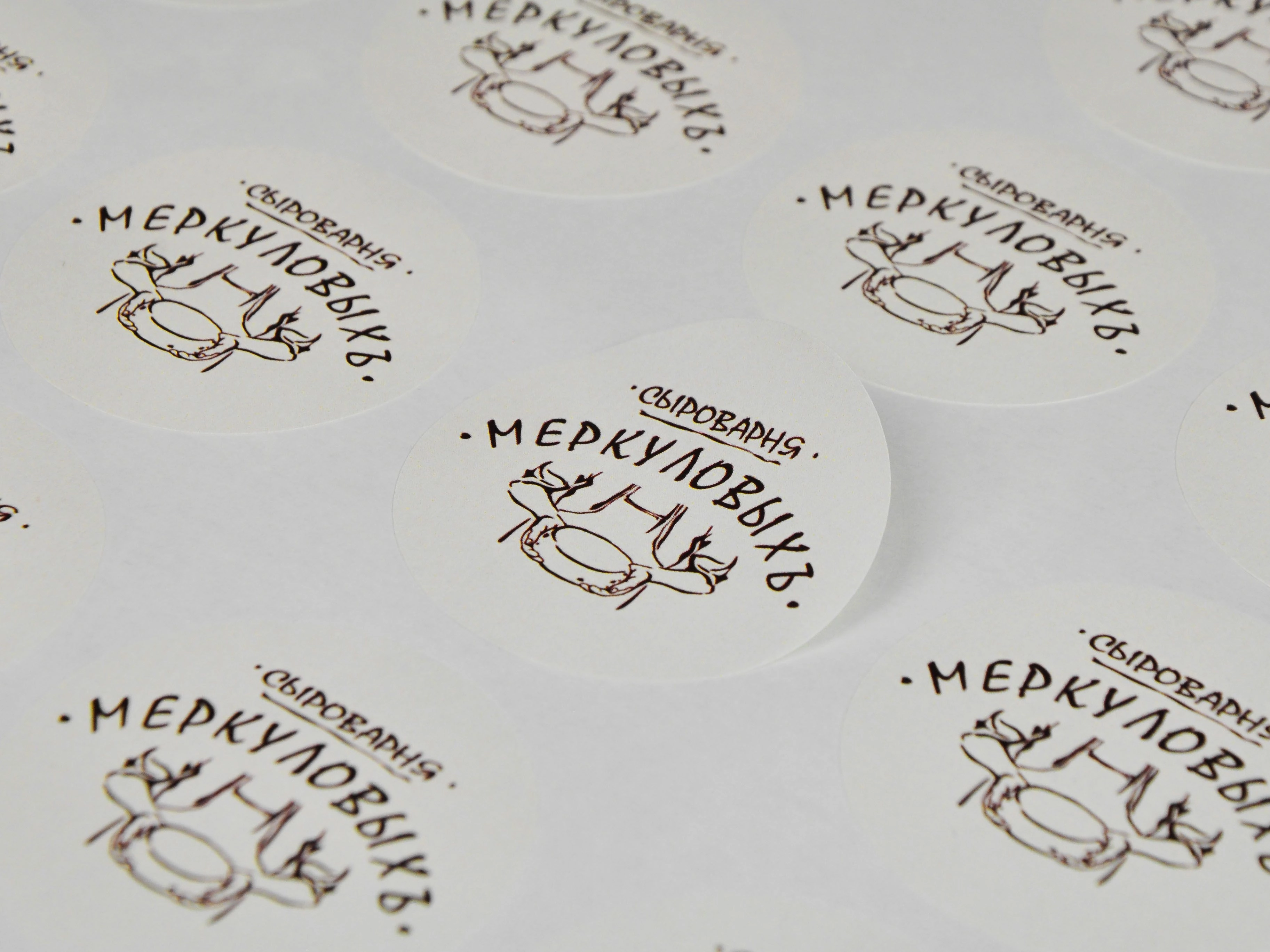 Наклейки фигурной формы для сыроварни "МЕРКУЛОВЫХЪ"