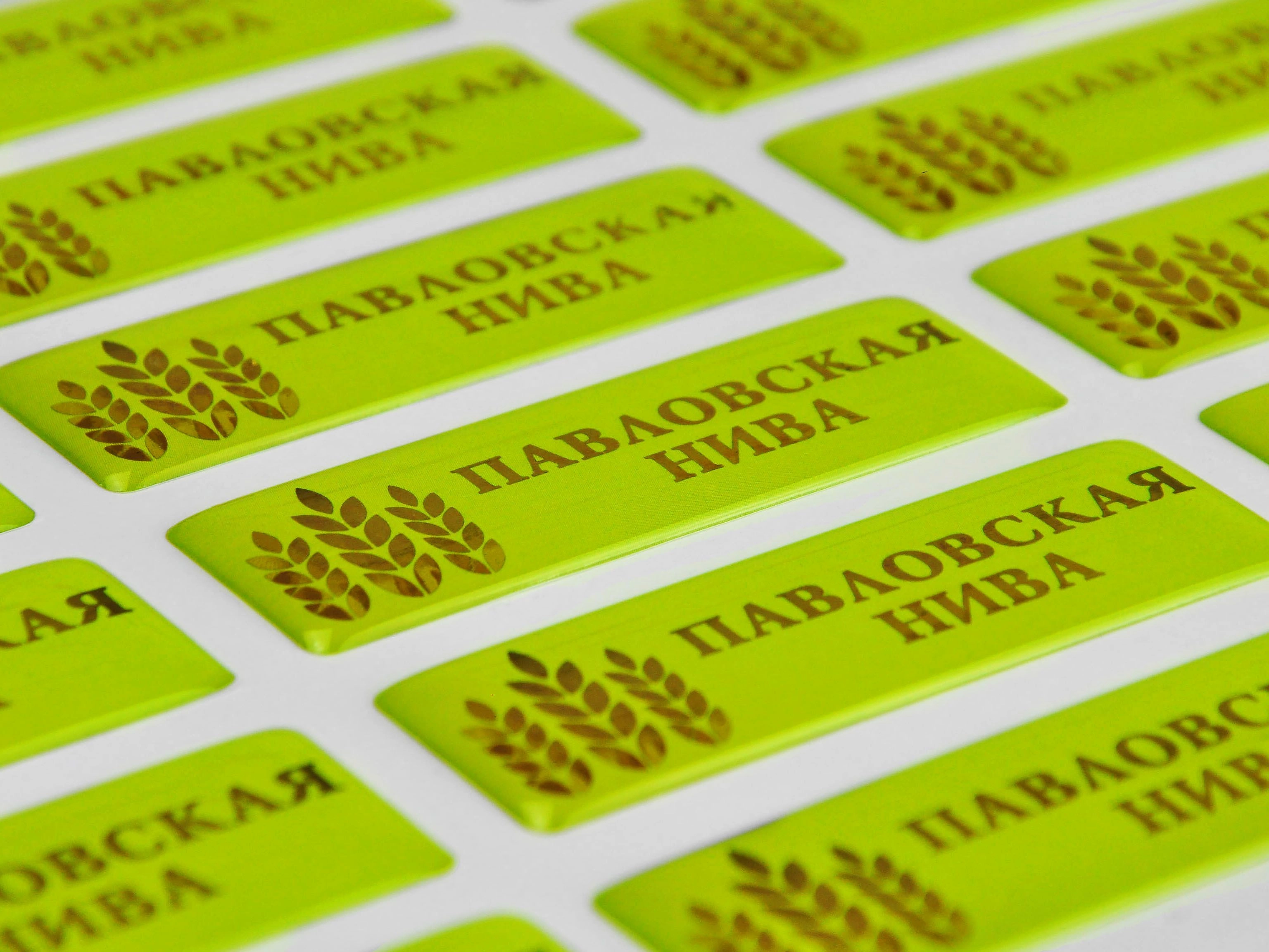 Наклейки с заливкой полимерной смолой и золотым фольгированием для "ПАВЛОВСКАЯ НИВА"