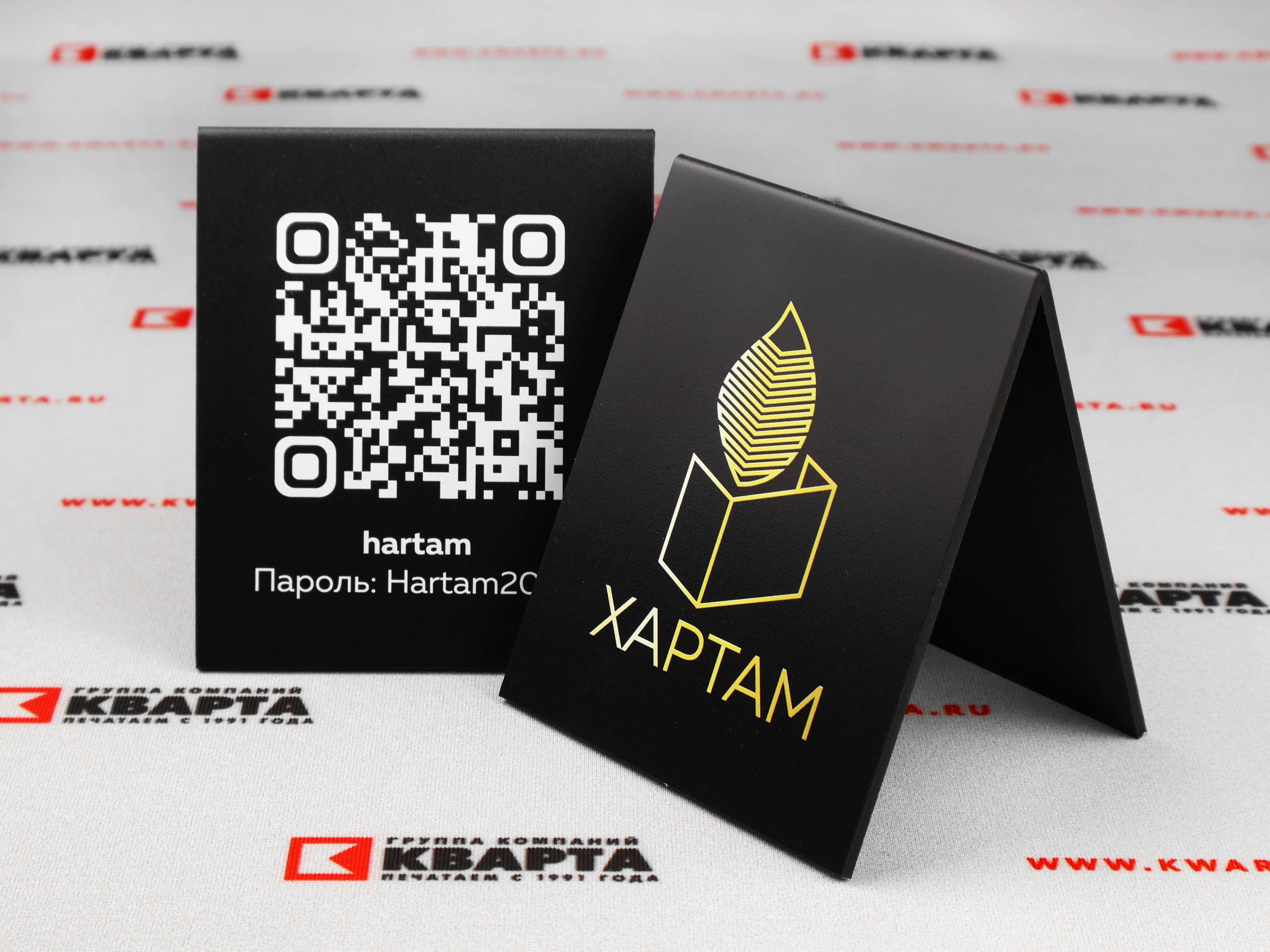 Настольные таблички из чёрного ПВХ‑пластика с УФ-печатью для "ХАРТАМ"