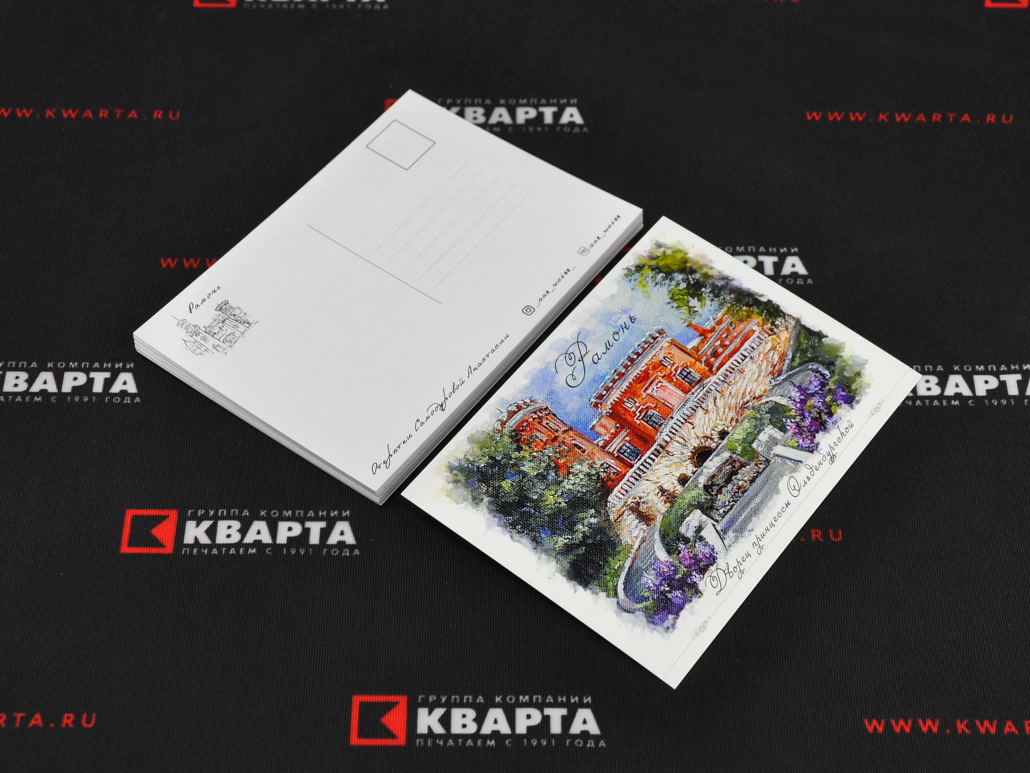 Изготавливаем почтовые открытки формата А6 на плотном картоне 300 г/м² с цифровой печатью. Высокое качество материалов и печати делает их отличным решением для поздравлений, промо-акций, адресных рассылок и туристических кампаний.Преимущества: