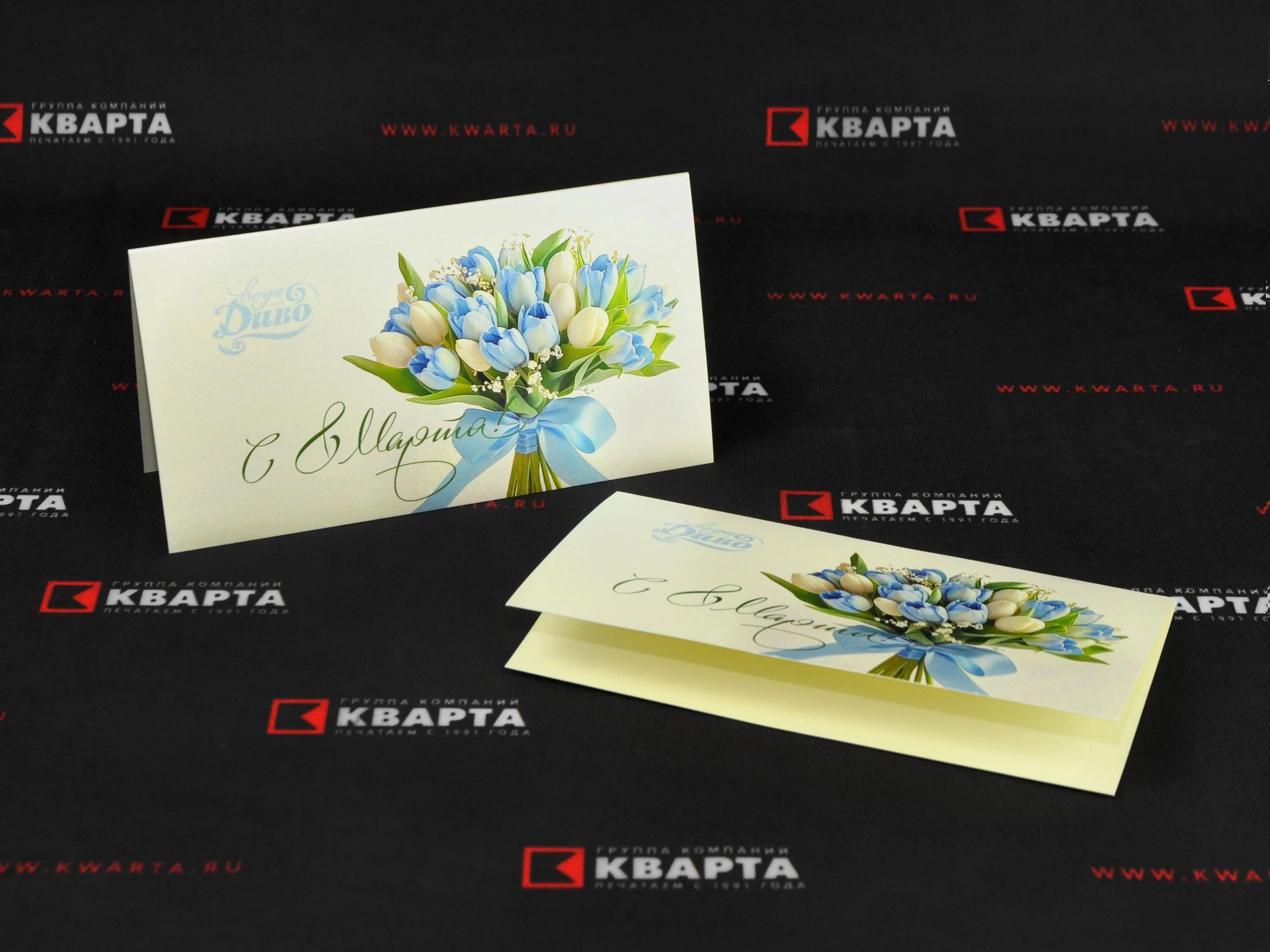 Поздравительные открытки к 8 Марта, выполненные на качественном дизайнерском картоне. Профессиональная печать и продуманный дизайн придают продукции презентабельный вид.Преимущества: