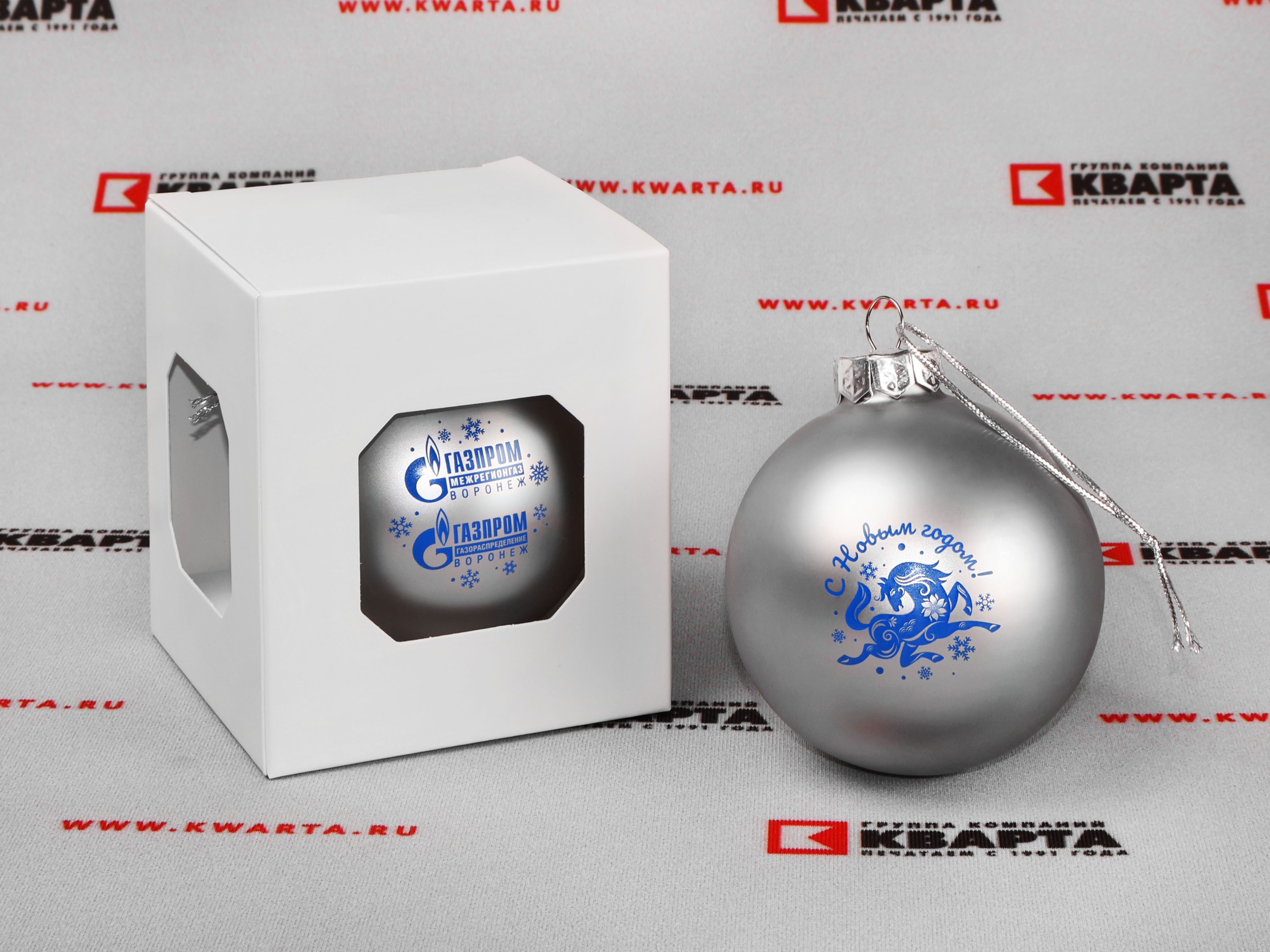 Стеклянные матовые ёлочные шары для "ГАЗПРОМ"