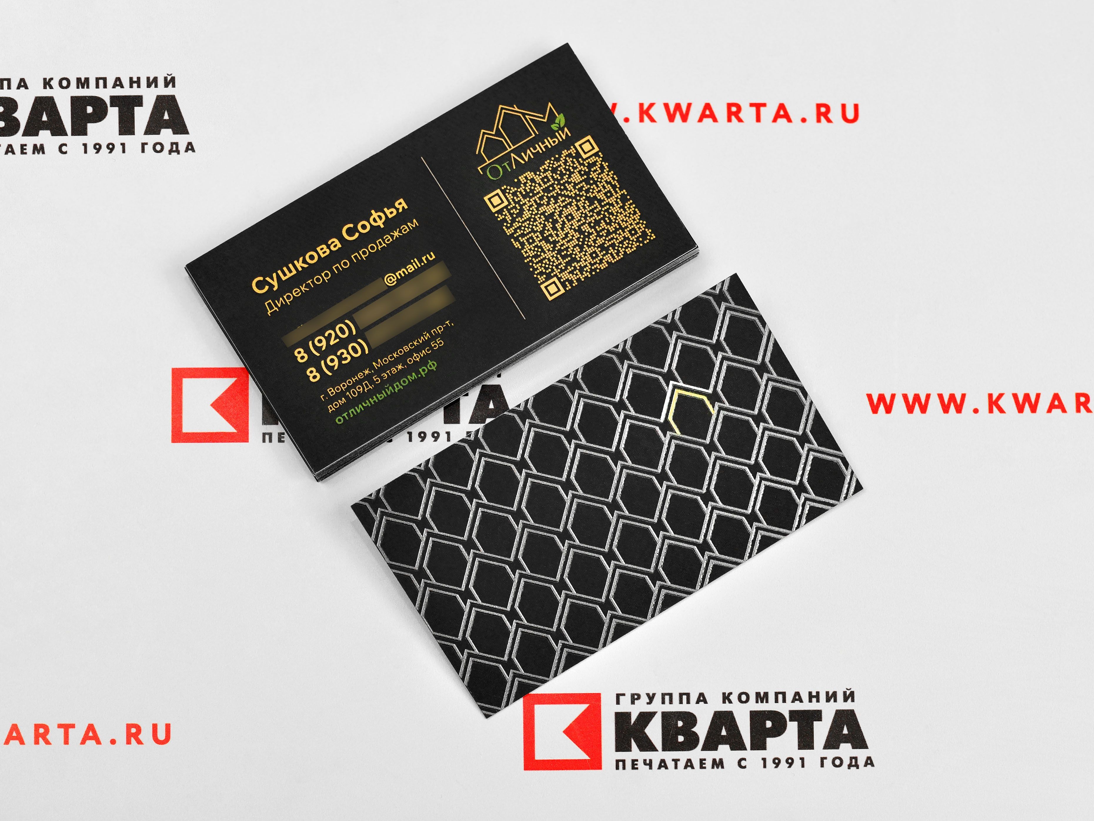 Матовая ламинация Soft Touch придает визитке бархатистую текстуру, делая её приятной на ощупь, а также защищает от повреждений и царапин. УФ-печать гарантирует яркие и насыщенные цвета, а также отличную детализацию изображений. Дополнительное использование лака позволяет выделить определенные элементы дизайна, создавая эффектный контраст и привлекая внимание. Такие визитки идеально подходят для профессионалов, стремящихся произвести впечатление и запомниться своим клиентам.Заказать визитки можно в любом из трёх отделений типографии "Кварта" в городе Воронеж или онлайн.