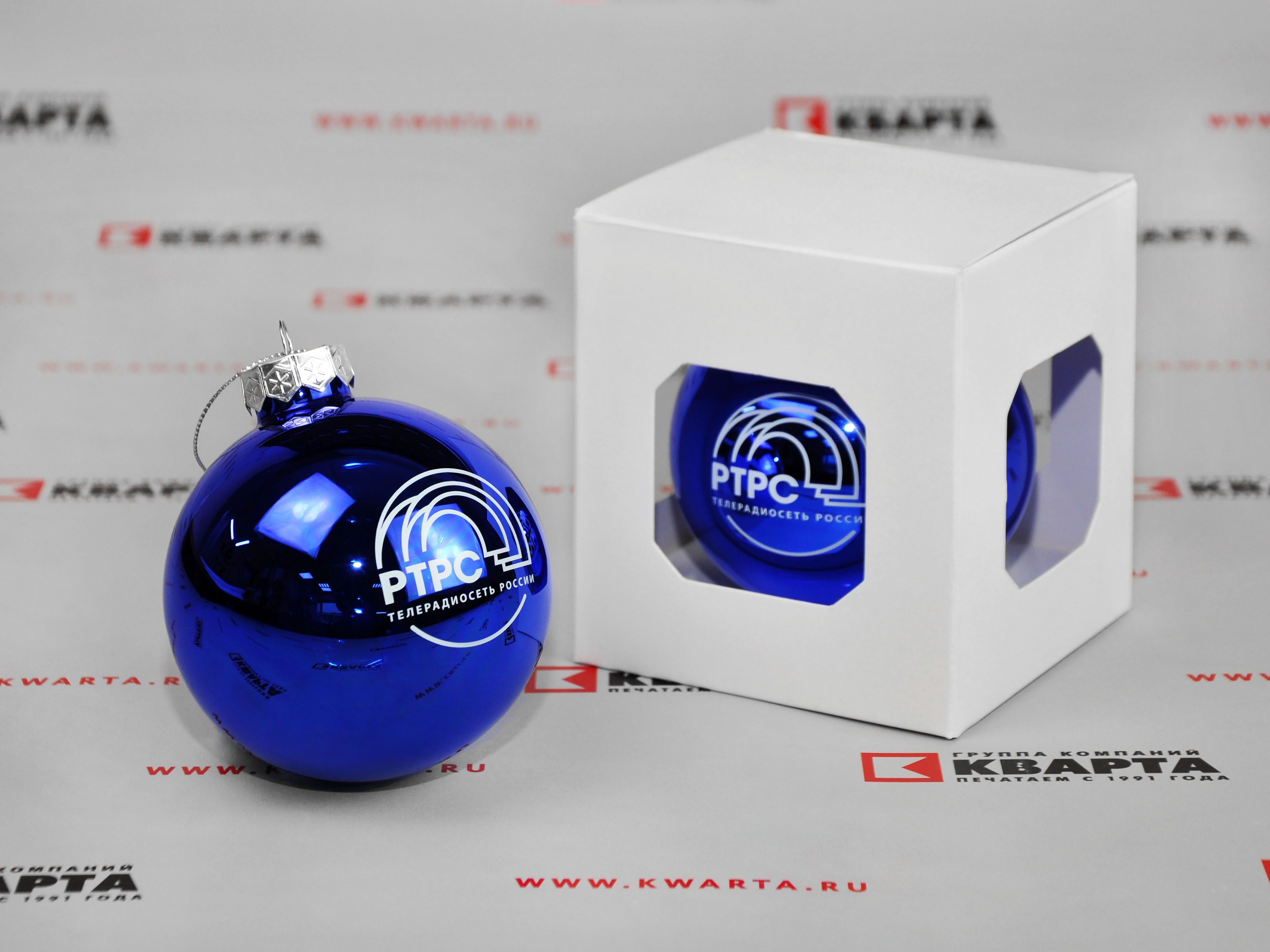 Стеклянные ёлочные шары с тампопечатью логотипа для "РТРС"